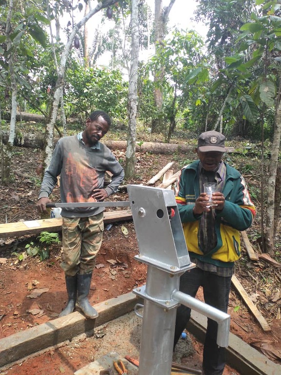 Das Brunnenprojekt wurde am 29. April 2023 fertiggestellt und die Einwohner des Dorfes Tchimazok konnten das saubere Trinkwasser genießen. „Der Traum ist endlich Realität in Tchimazok geworden. Wir freuen uns sehr darüber, dass die Arbeiten so schnell und ohne Vorkommnisse gelaufen sind. Nach gut zwei Tagen Grabarbeiten wurde das Grundwasser erreicht, sodass der Brunnenbau in Tchimazok als das schnellste Projekt unserer deutschen Freunde in Afrika eingestuft wurde. Wir danken besonders unseren deutschen Freunden dafür, dass sie an uns in Gabun gedacht haben und damit im Dienst des afrikanischen Kontinents stehen“, verlautet der Patriarch Paulin NGUEMA ETOME, der nur schwer seine Begeisterung zurückhalten kann.